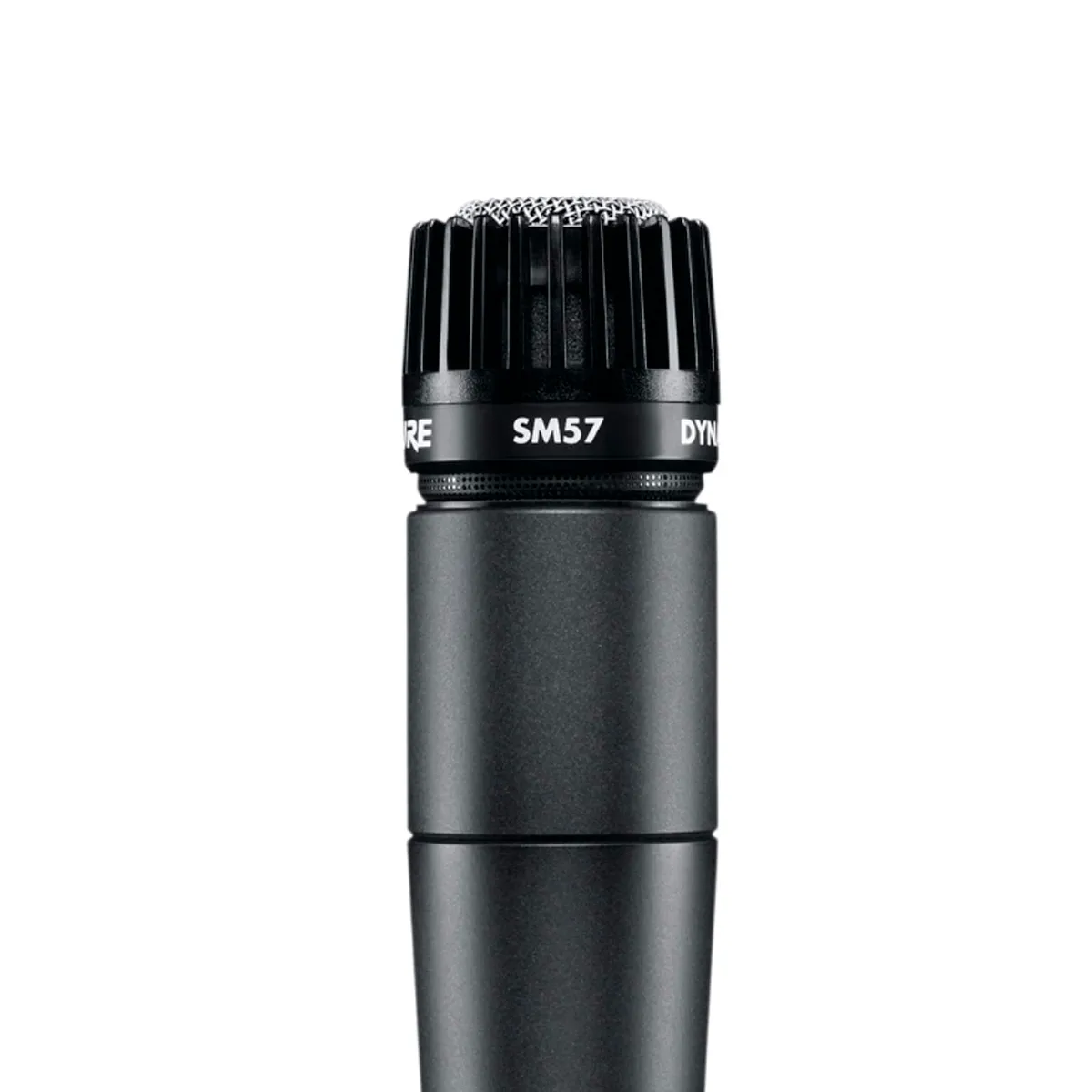 Shure SM57 — это универсальный динамический микрофон, предназначенный для озвучивания музыкальных инструментов на сцене и в студии. Он хорошо справляется с ударными, гитарными кабинетами и духовыми, передавая звук чётко и без искажений. Кардиоидная направленность помогает изолировать нужный источник и снизить фоновый шум. Микрофон устойчив к механическим воздействиям и подходит для интенсивного использования в гастрольных условиях. Это надёжный рабочий инструмент для тех, кто ценит стабильность и предсказуемость в звуке.
