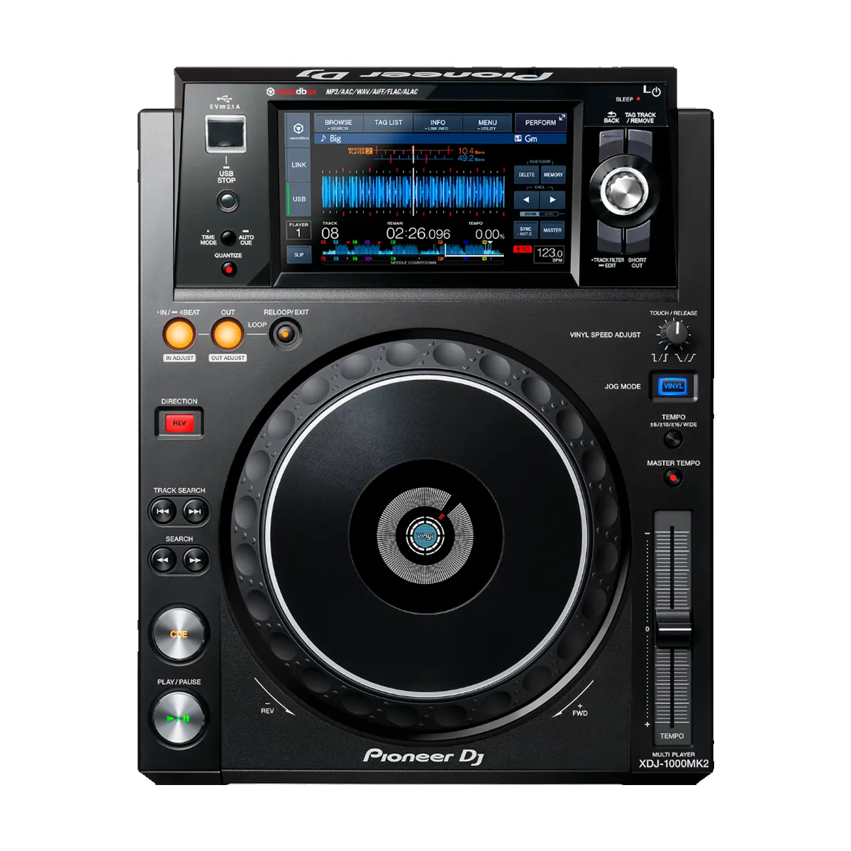 Pioneer XDJ-1000MK2 — это DJ-плеер с сенсорным экраном, который работает с флешками и rekordbox. Он подойдёт для клубов, студий и выездных сетов, особенно если не нужен проигрыватель дисков. Устройство удобно в использовании: на большом экране легко искать треки, а функции вроде Hot Cue, Beat Jump и Quantize помогают точно управлять миксом. Поддержка форматов FLAC и ALAC даёт чистый звук, а Pro DJ Link позволяет соединить несколько плееров в одну систему.